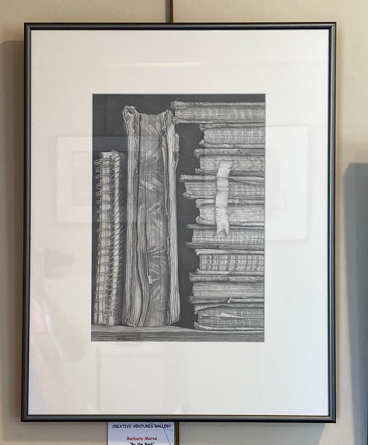 “By The Book” is an exquisite collection of tattered, aging books. Can you look carefully and find the bits of color?