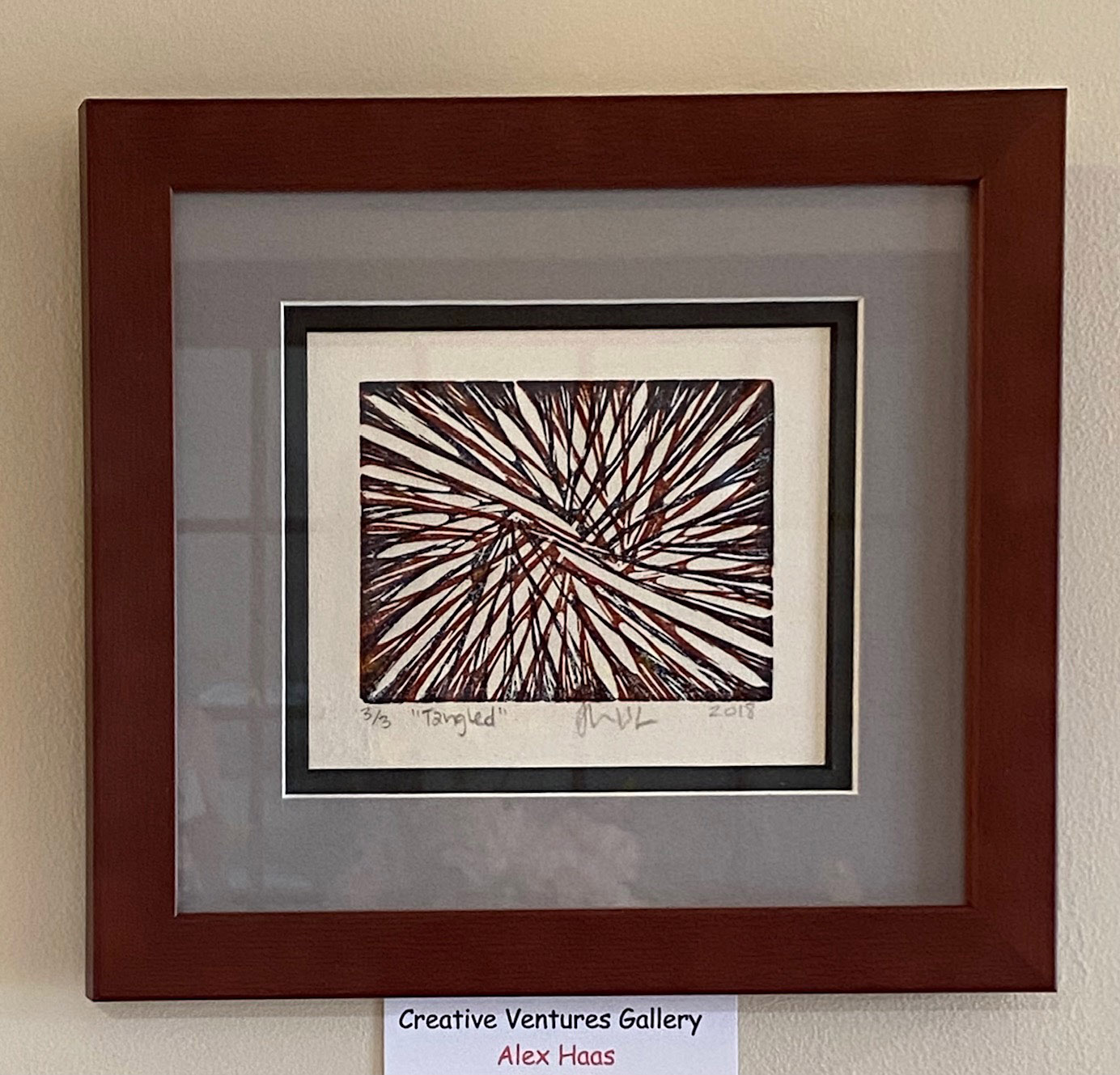 This is a double printed Relief Print and is paired with “Twisted” at https://creativeventuresfineart-com.seethewebdev.com/product/twisted-by-alex-haas/