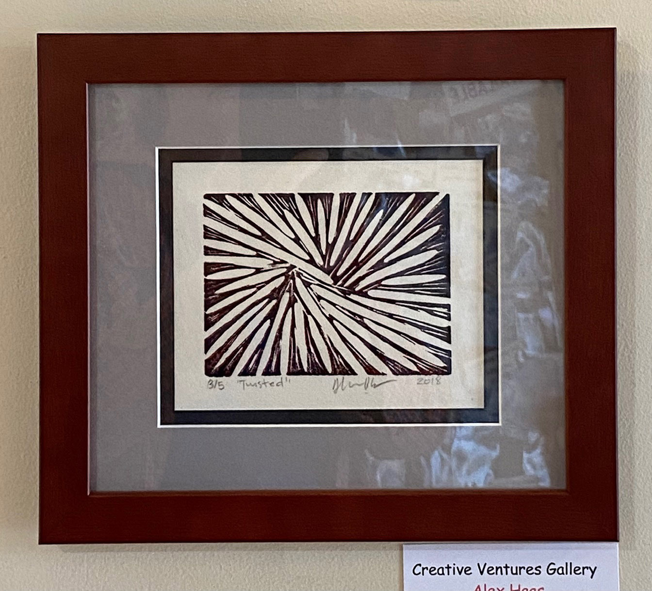 This is a relief print and is paired with “Tangled”. See it at https://creativeventuresfineart-com.seethewebdev.com/product/tangled-by-alex-haas/