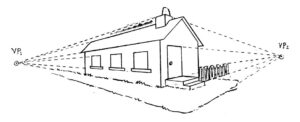 In order to use foreshortening, you will use perspective lines. These are lines that extend from a single point on the horizon line, called the vanishing point. Perspective lines will help you determine the size of your object as it recedes from you into the background. Once again, the further your object recedes into the distance, the shorter and smaller it will become.
